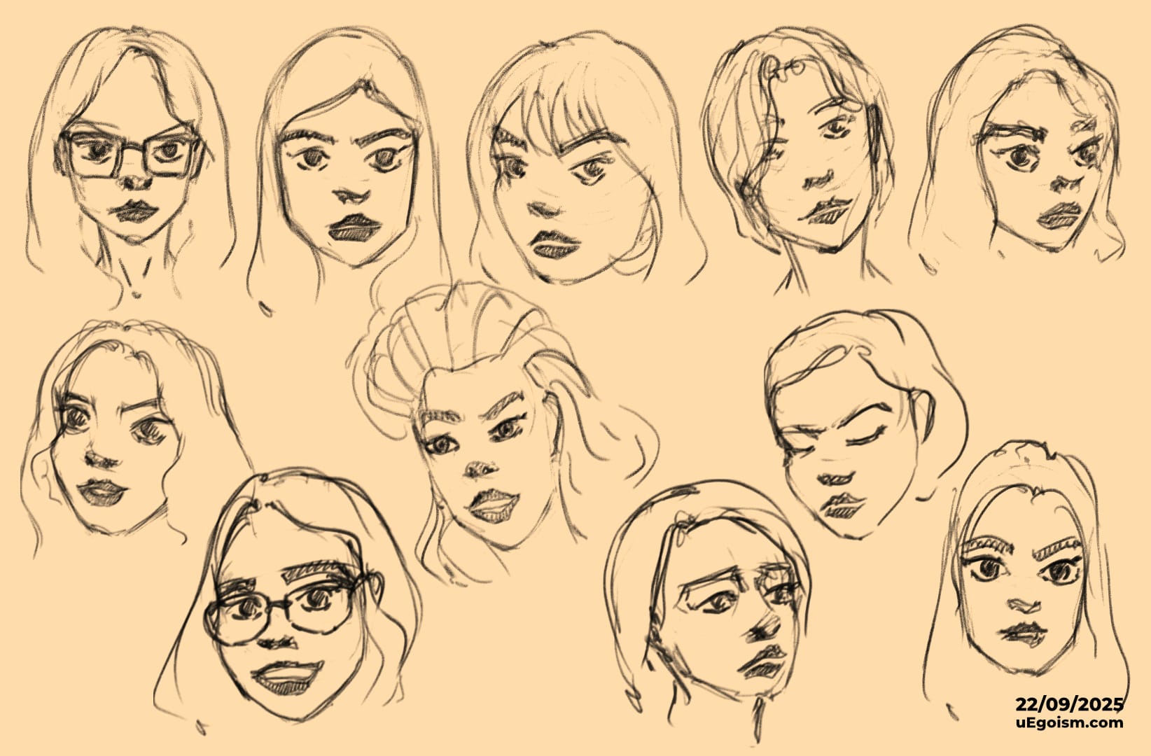 Sketch Quick sketches #8 uEgoism 22 Sep 2025 I was tired when I was sketching today, and I think it shows in the result. The whole process took an hour and a half.
